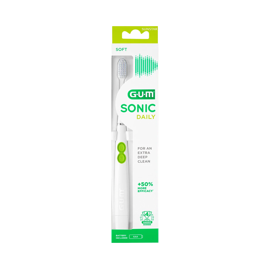 The GUM Sonic Daily Toothbrush delivers gentle yet deep cleaning with 12,000 sonic vibrations per minute and ultra-soft tapered bristles.